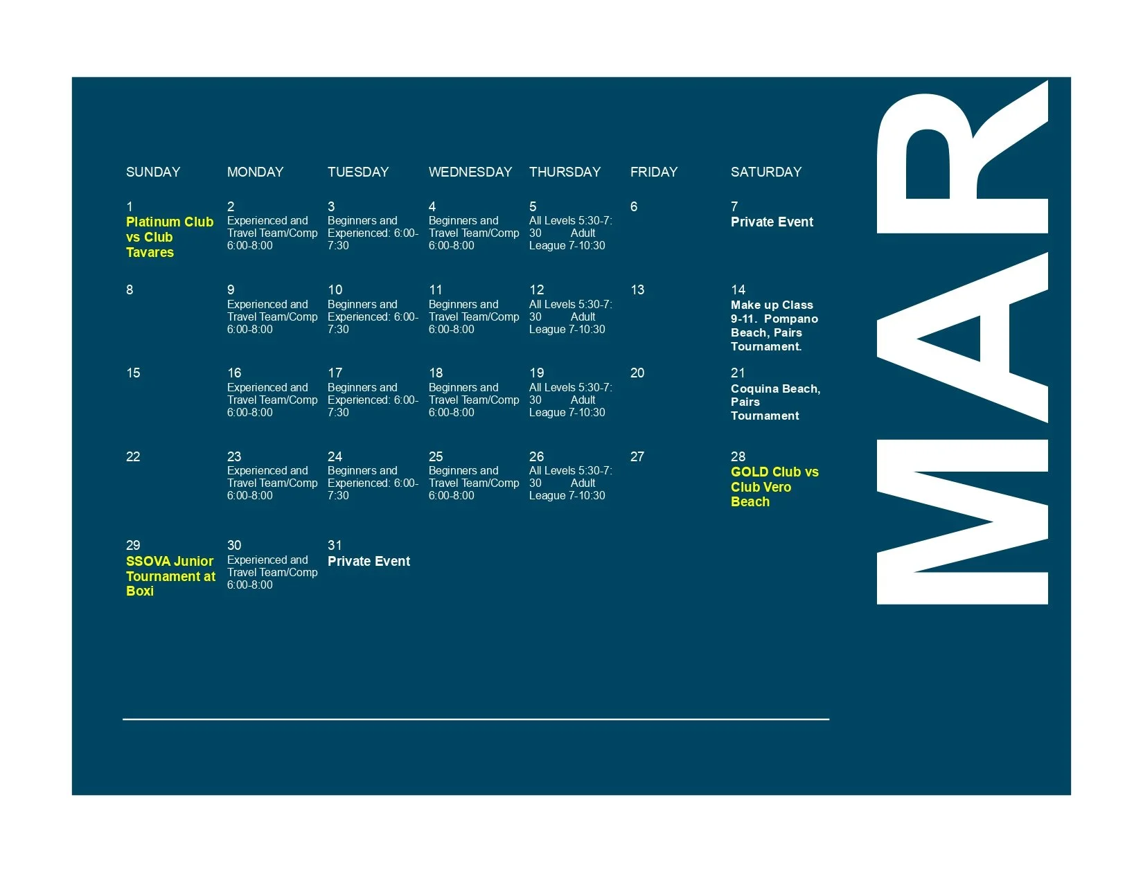 Practice Schedule for Feb/Mar
